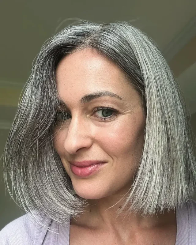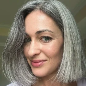 Un buen corte resalta la belleza natural de las canas. Mantener el cabello bien estructurado y con forma ayuda a que el color se vea más uniforme y elegante.