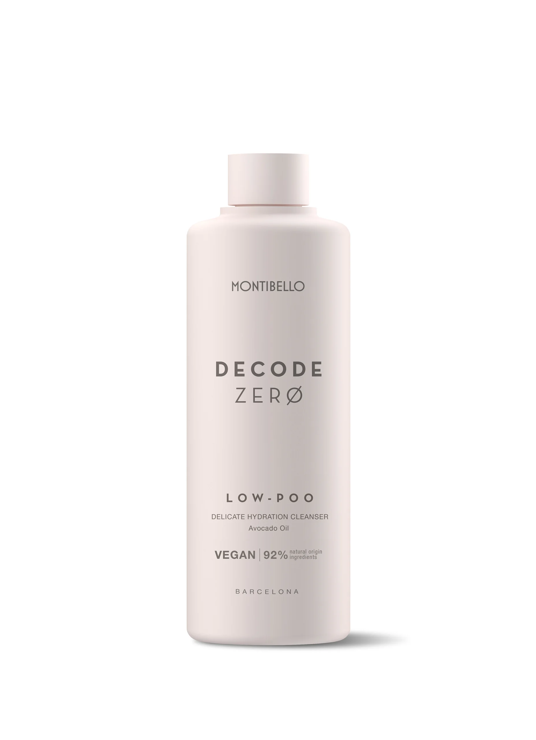 Champú Decode Zero Low-Poo Montibello, de uso frecuente hidratante que limpia el cabello y el cuero cabelludo con delicadeza. Indicado para todo tipo de cabellos, especialmente cabellos deshidratados o de cuero cabelludo seco, sensible o irritado.